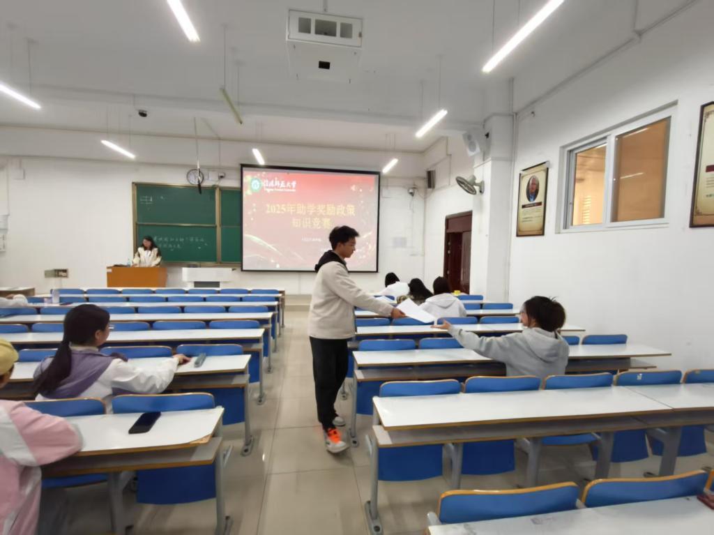 3 月 22 日 18:00 至 19:00,信阳师范大学学生工作部(处)资助管理中心携手传媒学院联合举办的信阳师范大学第一届“资助育人・放飞梦想”资助政策知识竞赛,在谭山校区社会科学楼324、325 教室顺利开展。本次竞赛面向校本部全体学生。