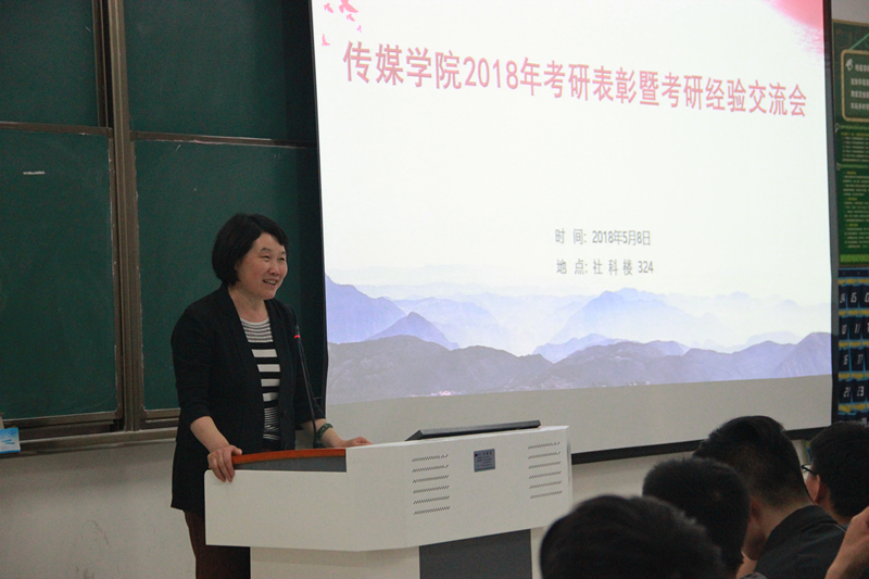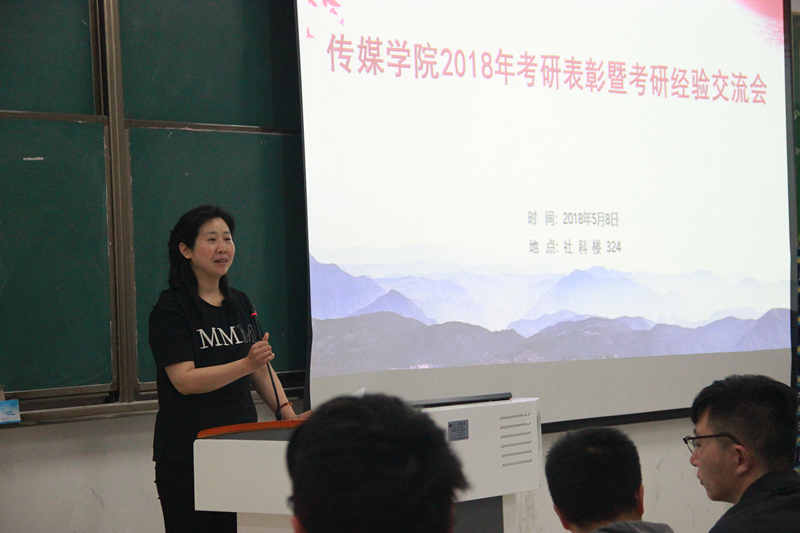 5月8日下午5点,传媒学院2018年考研表彰暨考研经验交流会在社科楼324教室召开。院长焦素娥,副院长刘想如、刘新建,2014级、2015级班主任,教学办张延鑫,2015级学生约150人参加了交流会。会议由刘新建主持。
