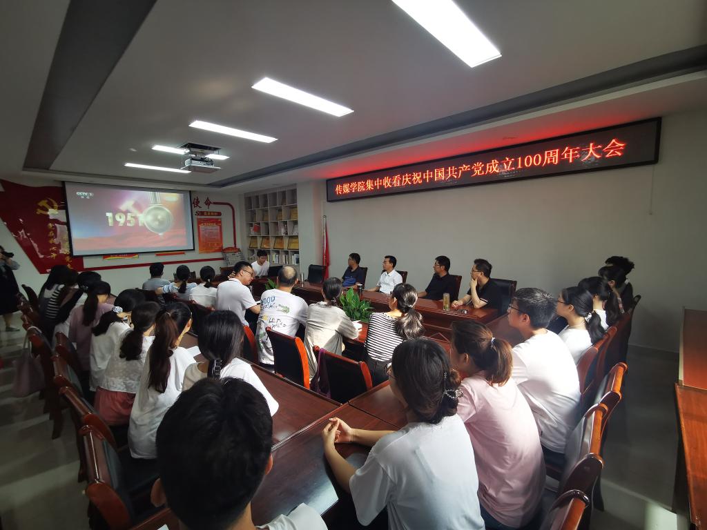 我院党委理论学习中心组成员和各支部书记、师生代表,在传媒学院会议室,集中收看大会盛况。其他师生在办公室、教研室、宿舍等地收听、收看。