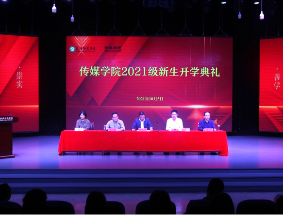 10月5日下午,传媒学院在社科楼演播厅举行2021级新生开学典礼。传媒学院全体班子成员及各系主任、2021级全体新生及硕士研究生参加典礼。为配合疫情防控要求,减少人员聚集,开学典礼采取线上直播的形式与线下同时进行。会议由党委副书记余伟主持。