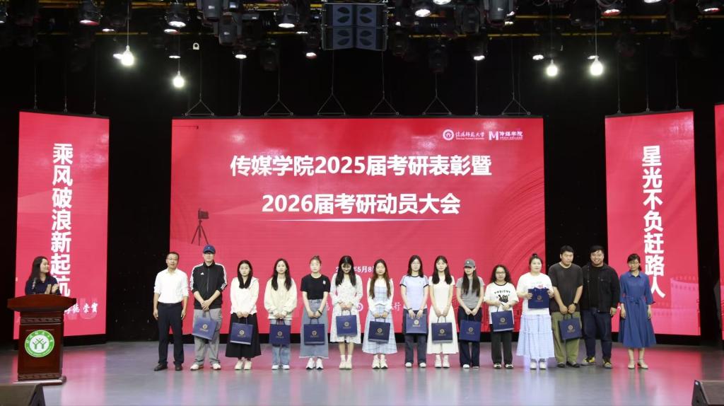 5月8日,传媒学院举办2025届考研表彰暨2026届考研动员大会。学院领导班子成员、教研室主任、相关班级班主任以及2021级考取研究生学生、2022级全体学生参加。会议由学院党委副书记余艳楷主持。