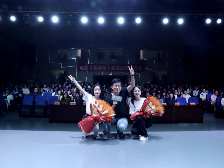 10月14日下午,信阳师范大学传媒学院演播厅内气氛热烈,由潇湘电影集团出品的电影《旁观者》全国高校见面会第五站在此温情启幕。传媒学院副院长田华和教师代表出席活动,学院师生齐聚一堂,以此片为基础围绕影视创作中的核心问题展开深度互动交流。
